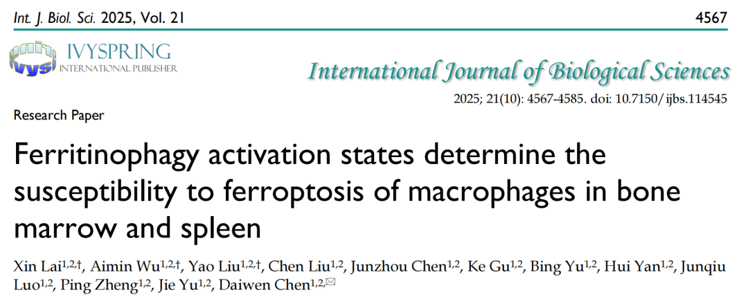 Lai X, Wu A, Liu Y, et al. Ferritinophagy activation states determine the susceptibility to ferroptosis of macrophages in bone marrow and spleen. Int J Biol Sci. 2025.doi: 10.7150/ijbs.114545.