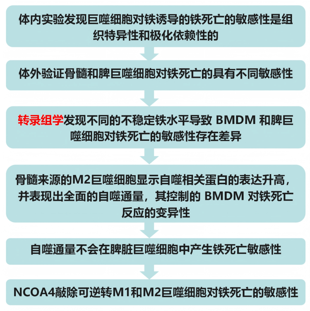 前期实验结果表明巨噬细胞对铁通应激敏感性的组织特异性调节,骨髓(BMDMs)和脾脏巨噬细胞的体外模型有效证明了铁诱导的铁死亡体内反应。
