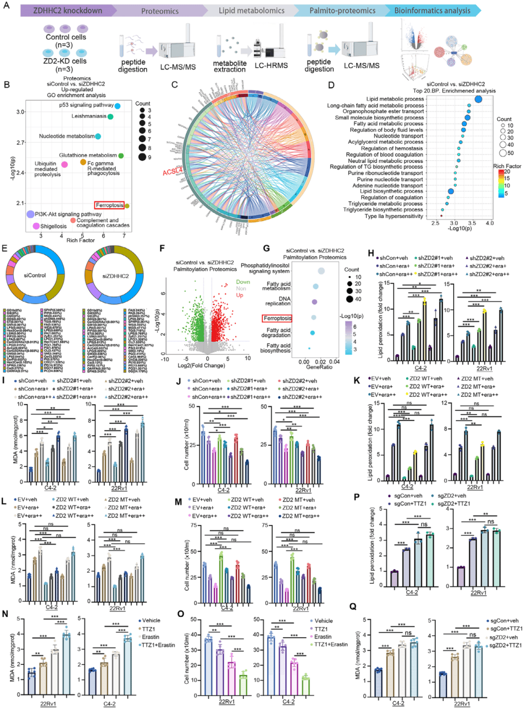 图3 ZDHHC2通过抑制脂质过氧化物生成和铁死亡,促进恩杂鲁胺耐药性