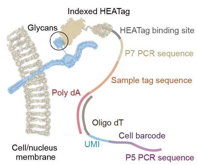 HEATag 不仅适用于转录组学,还能与表观基因组学、蛋白质组学、空间组学等技术结合,通过定制索引和寡核苷酸序列,HEATag 可以轻松融入不同的组学流程,不影响信号捕获深度。同时,基于HEATag还可以发展单细胞糖组学研究技术。
