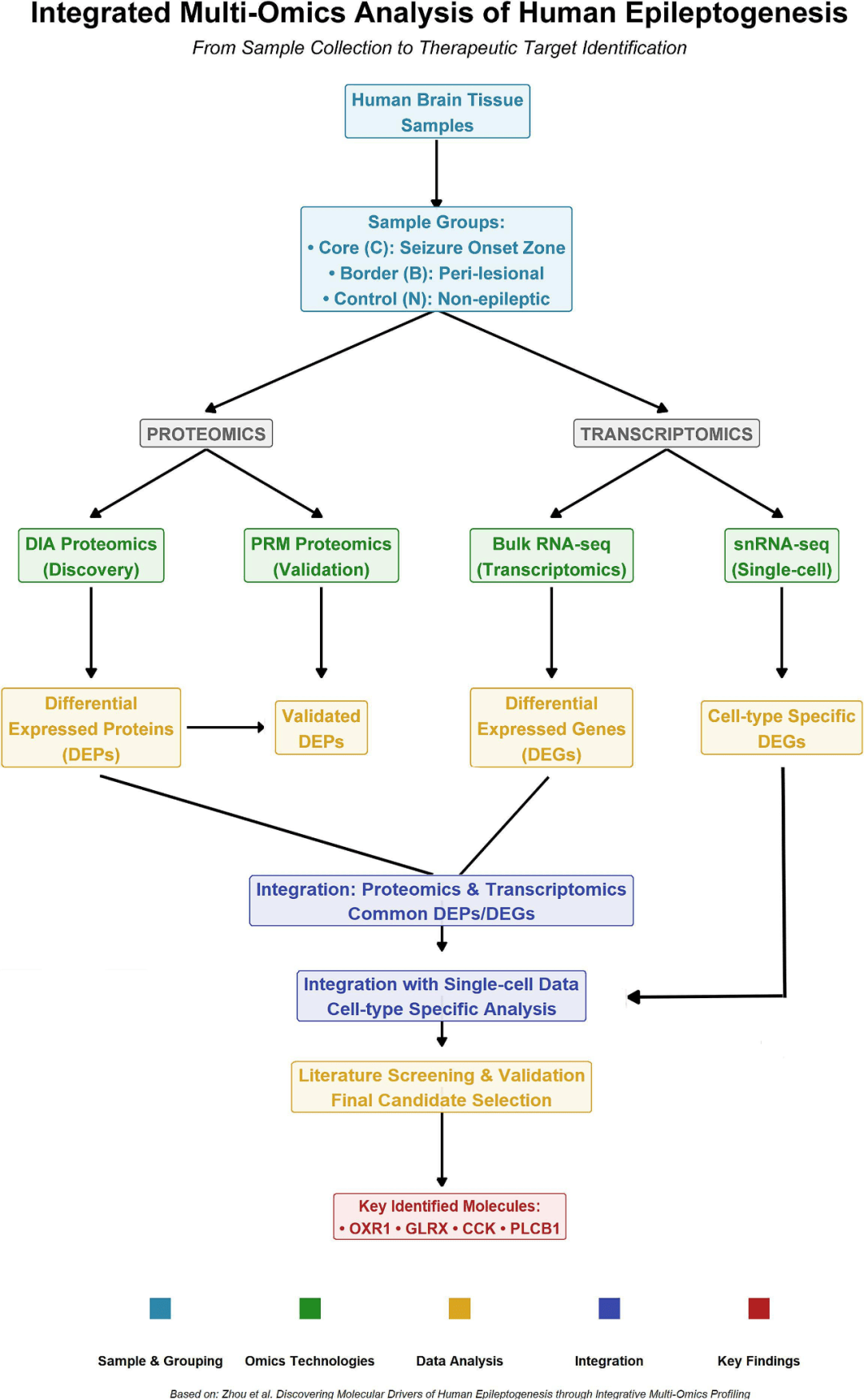 在这项研究中,使用来自癫痫患者和非癫痫对照的手术切除的脑标本进行了全面的多组学分析。通过RNA-seq,snRNA-seq,DIA蛋白质组和PRM靶向蛋白质组数据集的整合分析,阐明人类癫痫发生的关键分子决定因素,并确定潜在的治疗靶点以改善疾病。