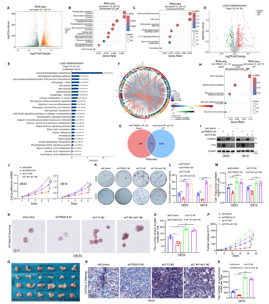 图4| YY2在EAC细胞中作为TRIM15的中介调控脂质代谢编辑
