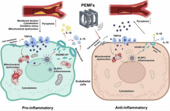 Pulsed electromagnetic fields inhibit atherosclerosis by regulating pyroptosis through membrane tension-mediated mechanosensitive channels