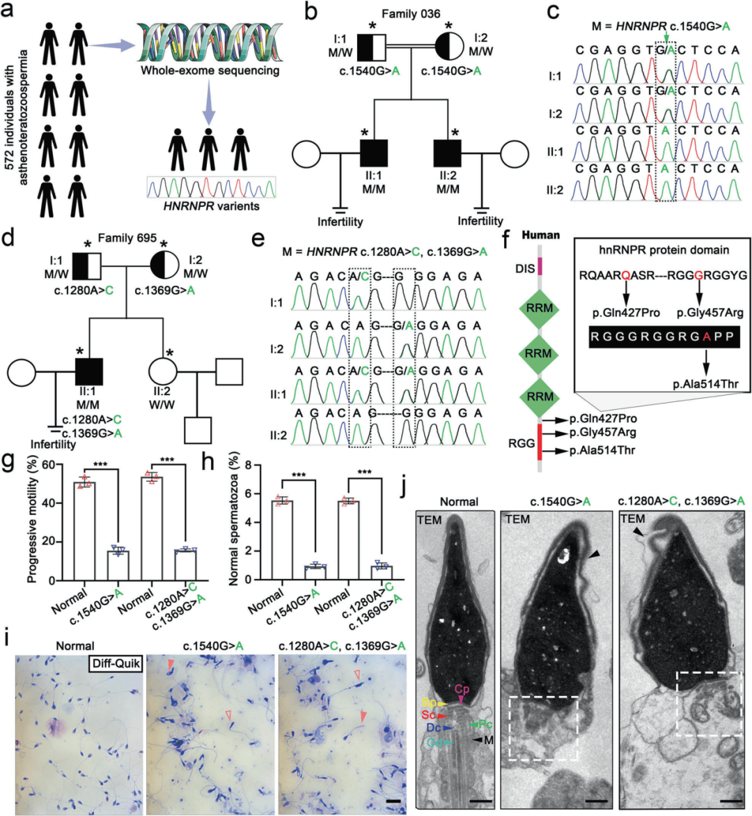 图1 HNRNPR突变导致弱畸精子症及男性不育