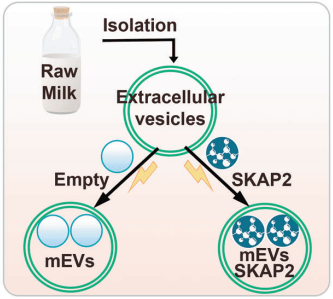 图5 乳源细胞外囊泡(mEV)分离及制备mEVs-SKAP2示意图