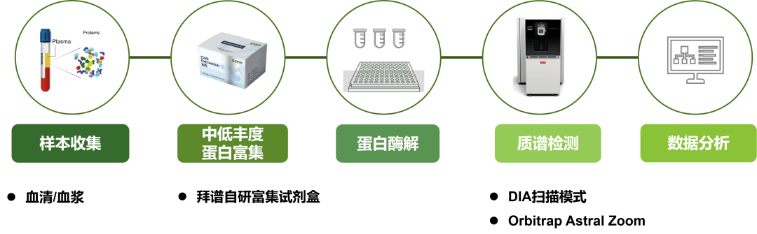 基于质谱的血液蛋白质组学研究技术为揭示血液中蛋白质的组成和功能提供了强大的工具。拜谱生物超高深度血液蛋白质组,通过自研低丰度蛋白富集技术结合Orbitrap™ Astral™ Zoom质谱平台,实现血液蛋白质组鉴定深度稳定突破8000+种蛋白,为大队列研究提供高覆盖、高精准的完整解决方案。