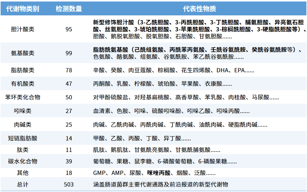 深度覆盖经典肠菌标志物及前沿报道的特色物质。