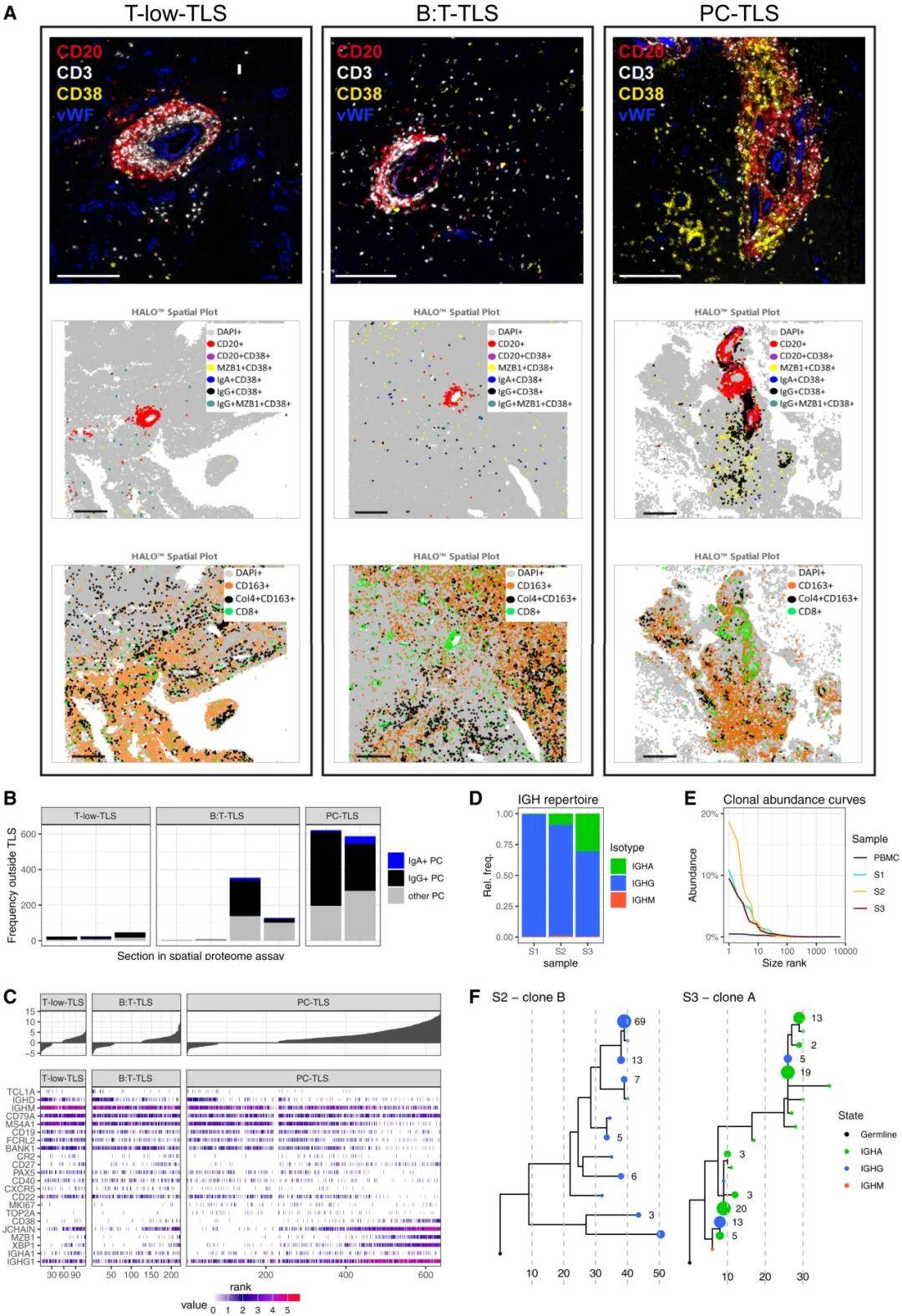 Fig4 B:T-TLS和PC-TLS表现出动态适应性免疫激活的特征
