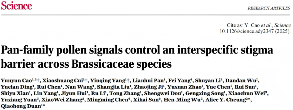 从Nature到Science!段巧红教授团队发现十字花科远缘杂...