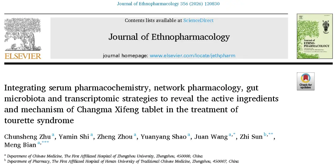 妥瑞氏综合征(TS)是一种儿童时期的慢性神经发育性疾病,其特征为持续性的运动性及发声性抽搐,严重影响患者的生活质量。菖麻熄风片(CMXF)是一种传统中药制剂,已被证明对儿童患者的妥瑞氏综合征症状有缓解作用。然而,其活性成分及确切机制尚待阐明。 近日,郑州大学第一附属医院朱春胜在Journal of Ethnopharmacology发表了题...