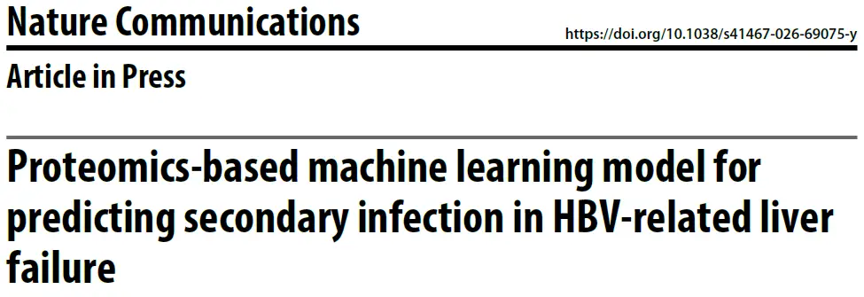在肝病诊疗领域,如何早期识别乙肝相关肝衰竭患者的继发感染风险一直是临床痛点。由于继发感染在早期往往缺乏典型的临床症状,致使约三分之一的感染病例直至患者入院后才被察觉,大幅增加患者死亡风险。 2026年3月3日,首都医科大学附属北京地坛医院金荣华院长,侯艺鑫主任,孙亚民研究员团队在Nature Communications杂志上...