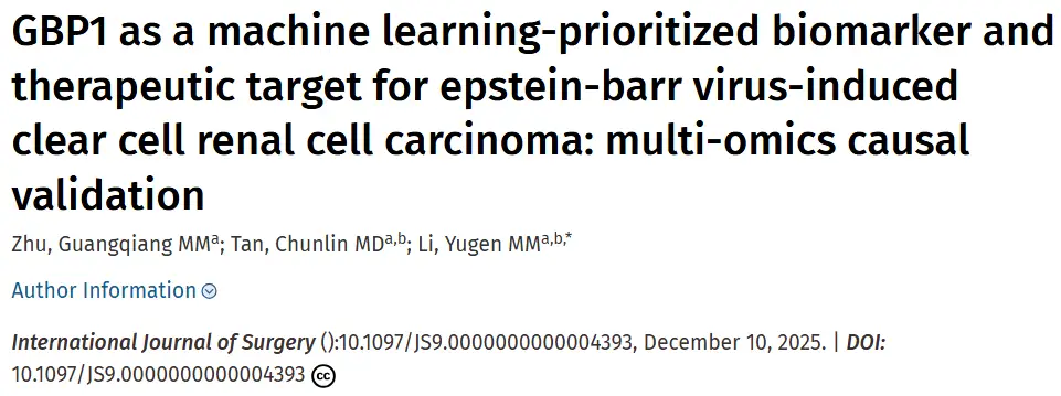 背景介绍 在病毒致癌、肿瘤异质性等复杂疾病研究中,科研者常面临两大痛点:一是海量组学数据与临床表型难以建立可靠关联,二是高分研究的技术流程复杂、难以复现。 近期发表于《International Journal of Surgery》的Epstein-Barr病毒(EBV)致肾透明细胞癌(ccRCC)研究,成功构建了一套“因果推断→靶点筛选→转化验证”完...