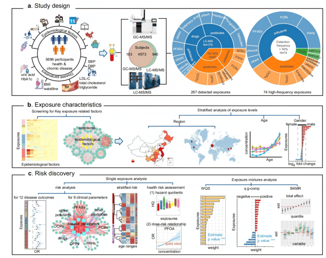研究概述:中国15省5696人血清暴露组研究,首次系统解析中国人群暴露特征与慢性病风险关联。