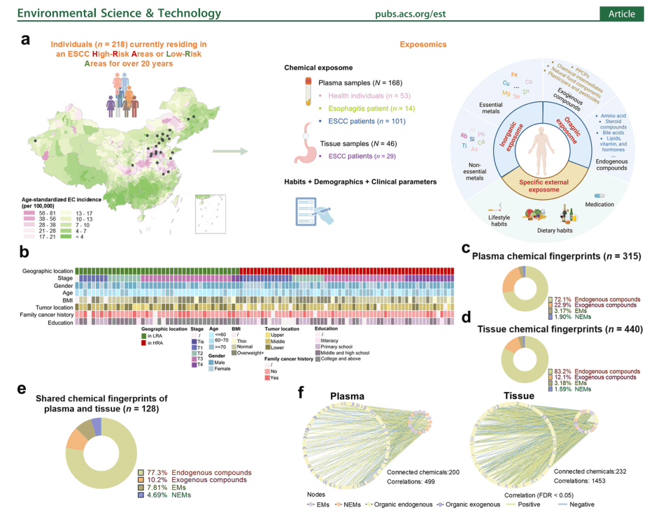 研究概述:12省238人研究,成功绘制食管鳞状细胞癌的化学暴露组图谱。